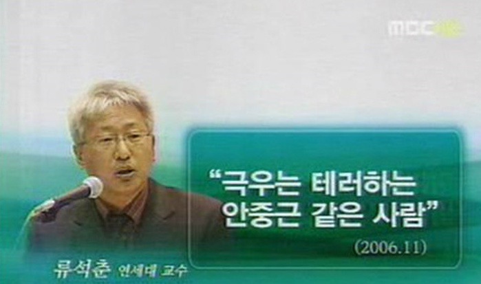 김구 안중근을 테러리스트라고 주장하는 류석춘 전 연세대교수 와 뉴라이트