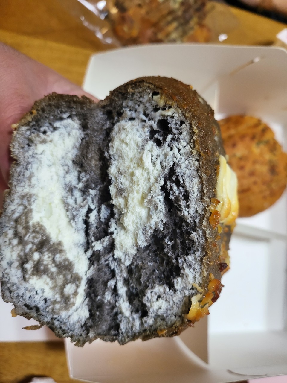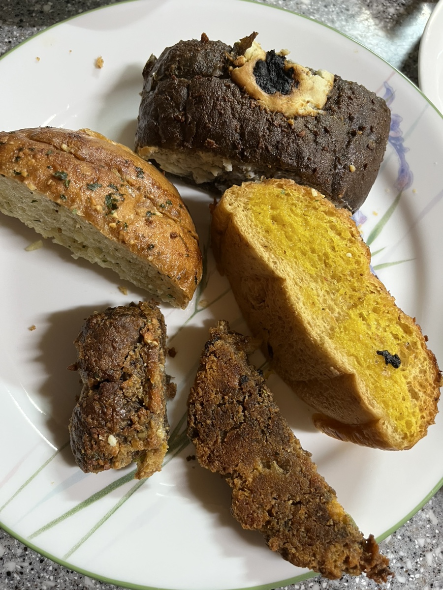 다양하게 맛보려고 잘라서 먹어봤습니다. 먼저 새우마늘빵, 매콤한 할라피뇨가 있다는데 매콤함이 거의 안 느껴집니다. 조금 매콤했더라면 느끼함도 잡아주고 더 맛있을