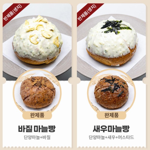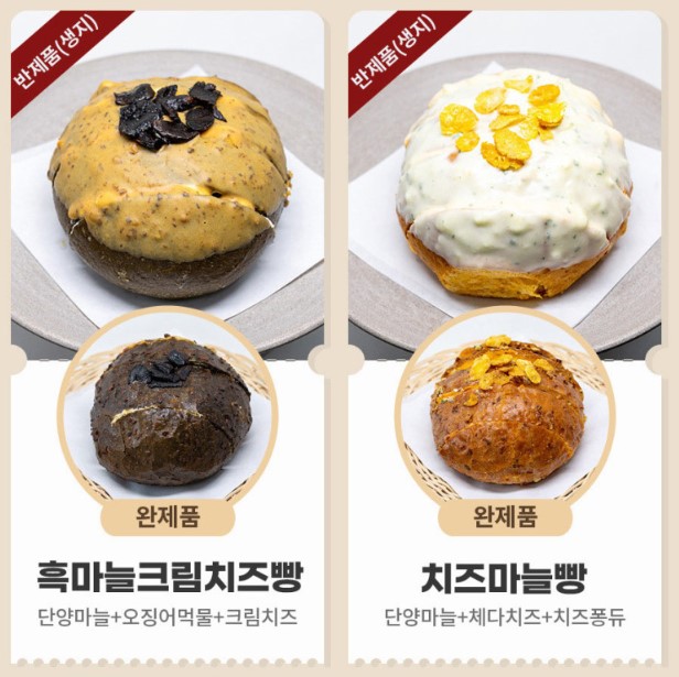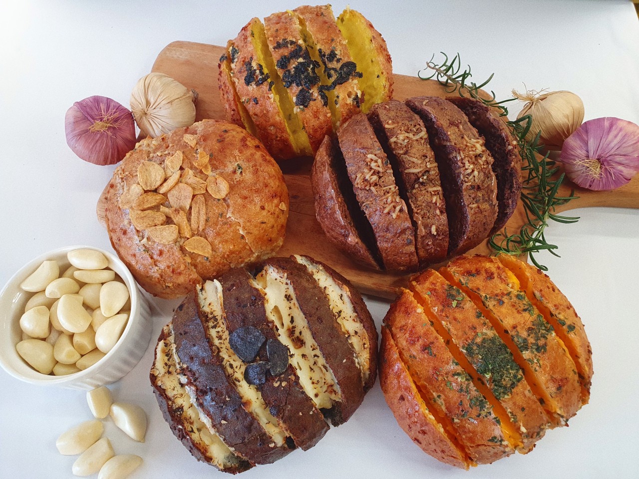 바질마늘빵 / 새우마늘빵 / 흑마늘 크림치즈빵 / 체다치즈 마늘빵