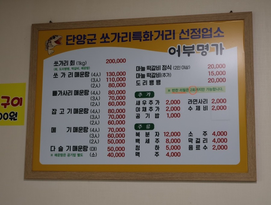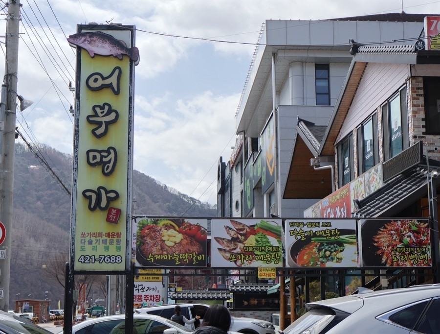 단양 쏘가리 거리 맛집 어부명가입니다.