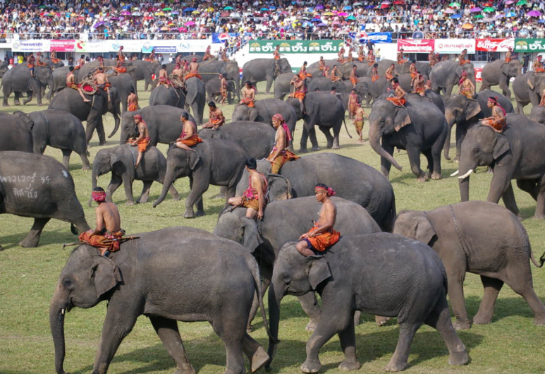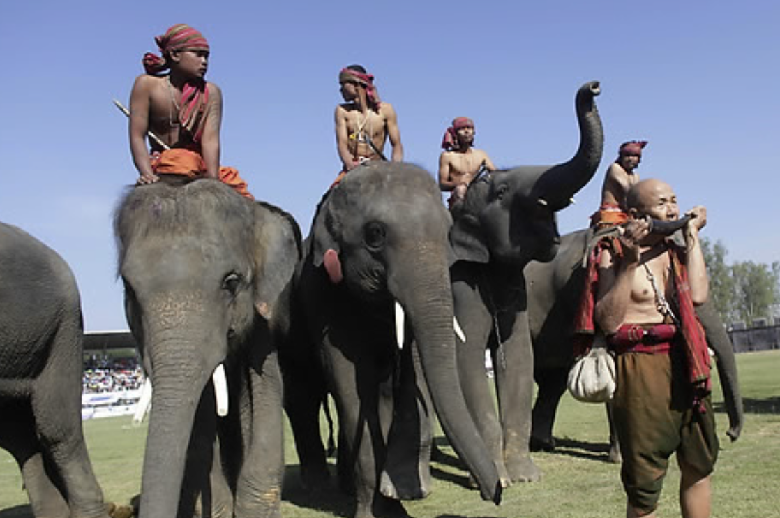 코끼리를 타고서 치루던 전쟁의 재현이나 코끼리가 축구하는 모습,