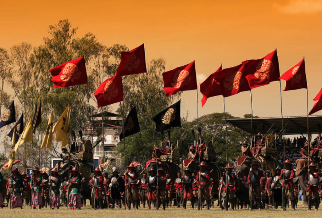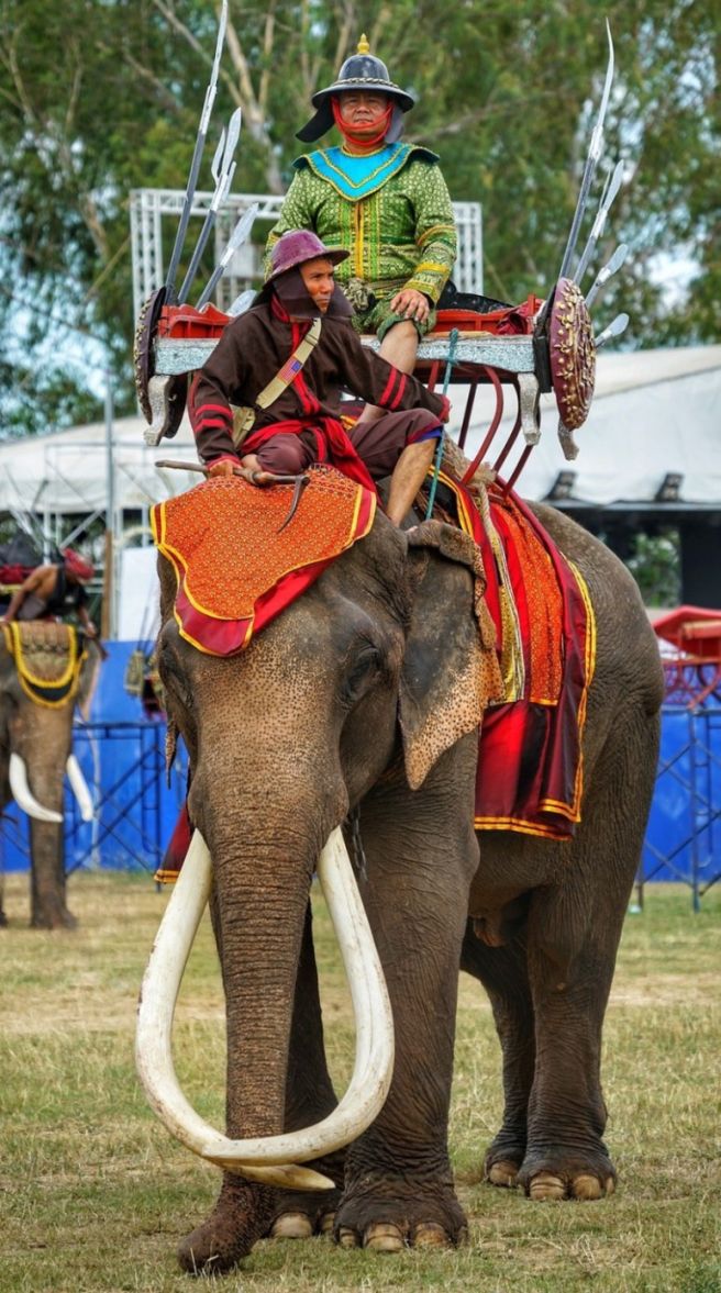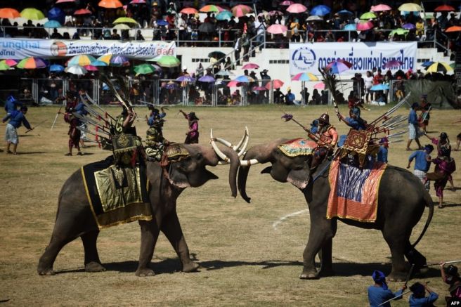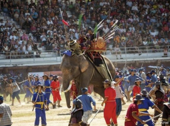 관광객들은 옛날에 코끼리를 타고서 치루던 전쟁의 재현이나 코끼라가