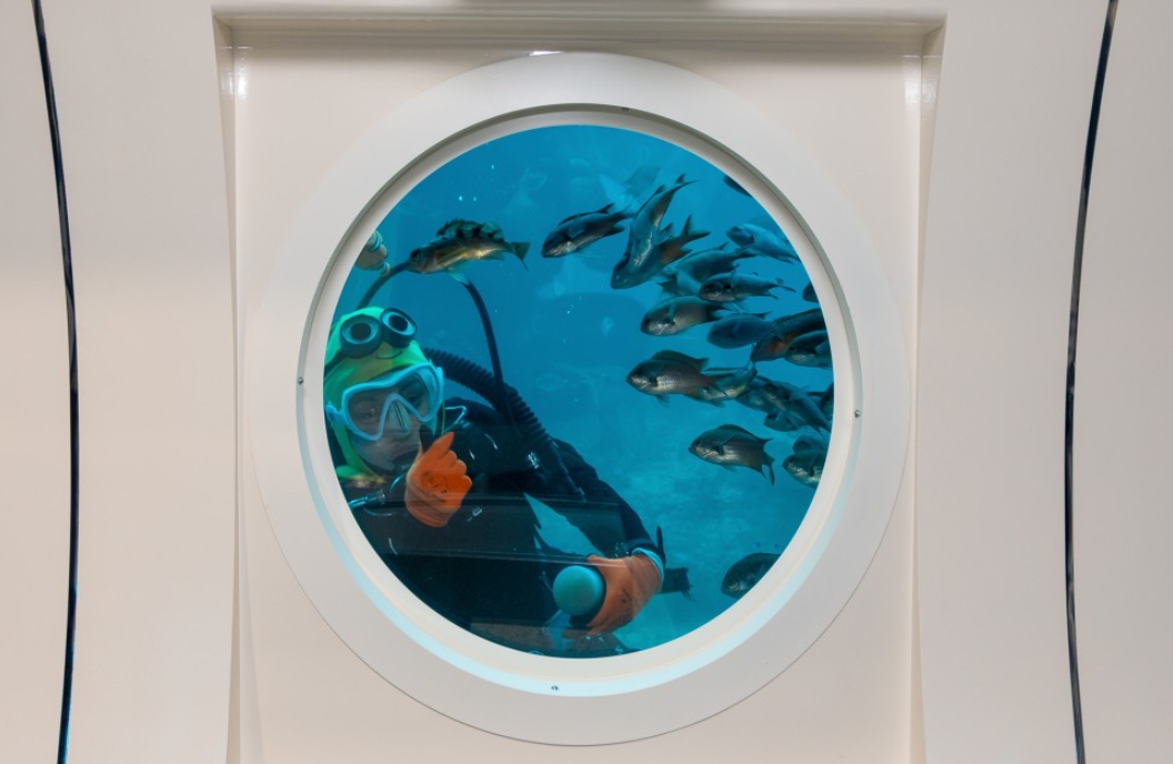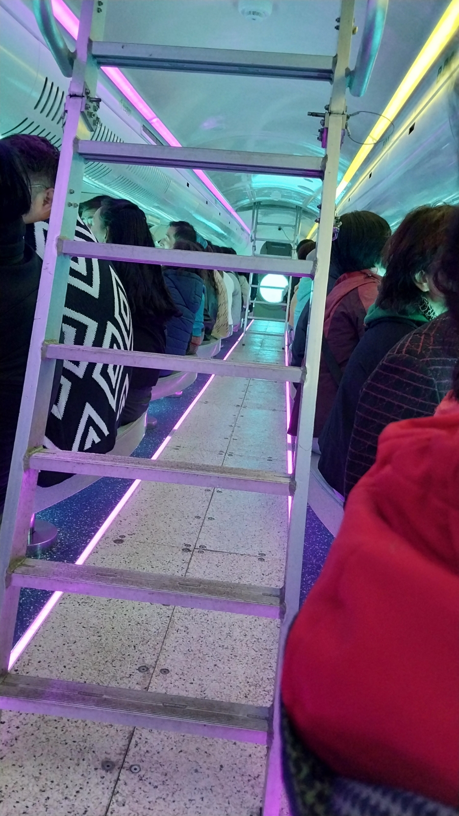 일단 탑승을 하면 이곳에 서식하는 어종과 해조류 등을 직원의 재치 있는 설명과 함께 신비로운 바닷속 해저 탐험을 시작합니다. 우도 잠수함의 내부 모습입니다 양쪽으로 관망창이 줄지어 있는데 바로 관망창을 통해 신비로운 우도 바닷속을 고스란히 감상할 수 있습니다.