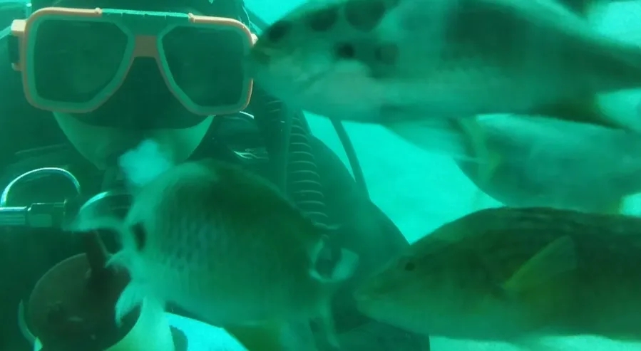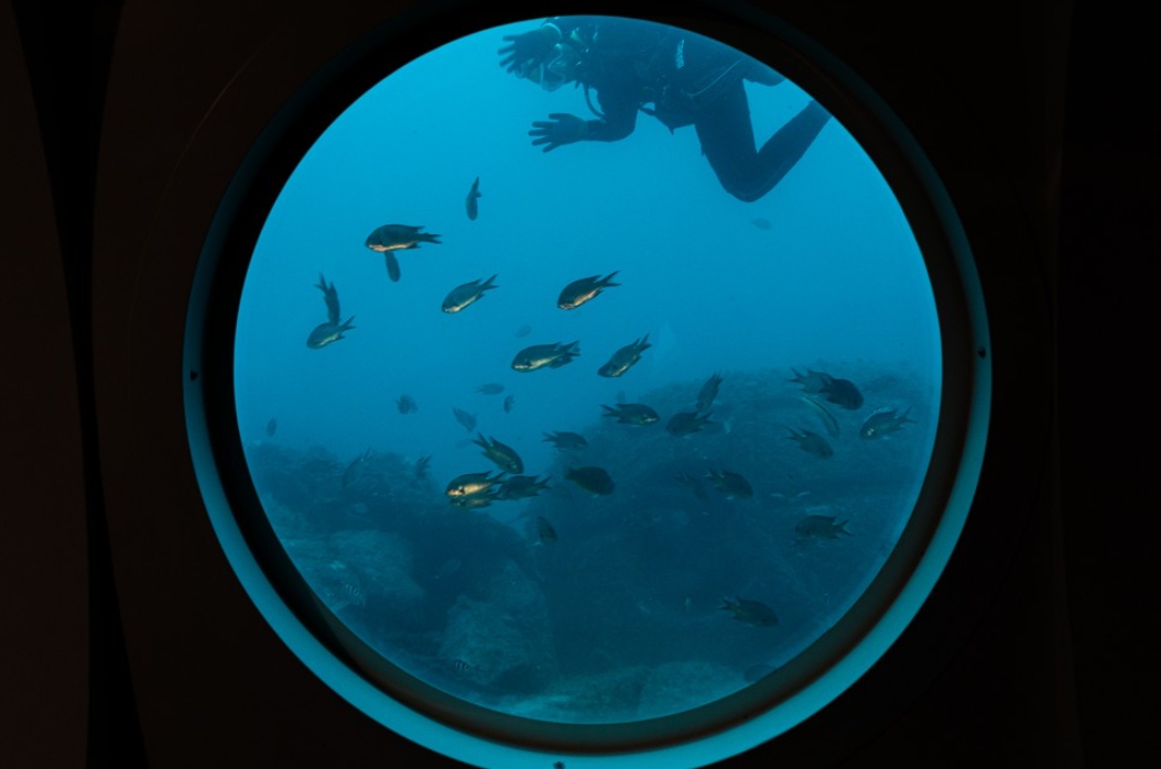 이날은 날씨가 좋아서 수심 30m까지 내려갈 수 있었습니다 아파트 10층 높이까지 내려온 거랍니다.