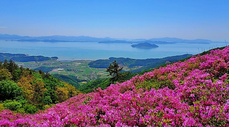 Illimsan Mountain, located in Ungchi-myeon, Boseong-gun, was named because it is a mountain so deep that you cannot see the sun once you enter the forest. It is a famous mountain rising 667m above sea level just before the Honam vein enters the South Sea, and in early May, about 150ha of light pink azaleas and vast tea fields bloom. Together with the blue sea in the background, it creates a beautiful scenery.
