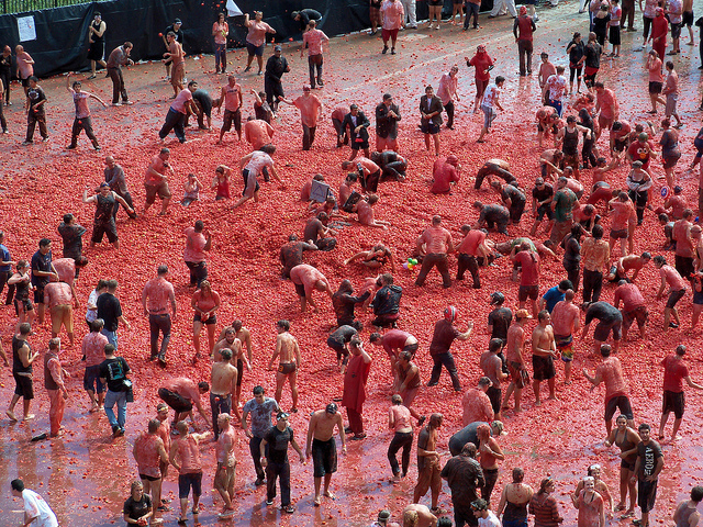 • 토마토 싸움: 수천 명의 사람들이 함께 참여하는 대규모 토마토 싸움.