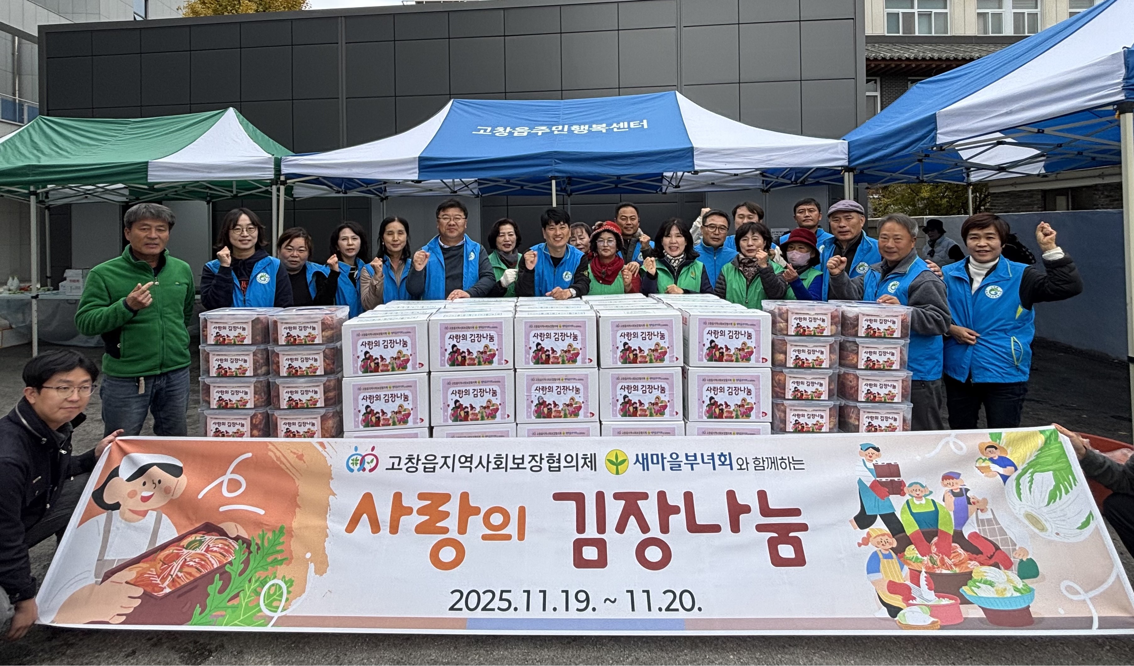 고창군 고창읍지역사회보장협의체(민간위원장 임진용, 이하 고창읍지사협)가 19~20일 이틀간 고창읍주민행복센터 주차장에서 새마을부녀회와 함께 진행한 ‘사랑의 김장나눔’ 봉사가 성황리에 마무리됐다고 밝혔다.