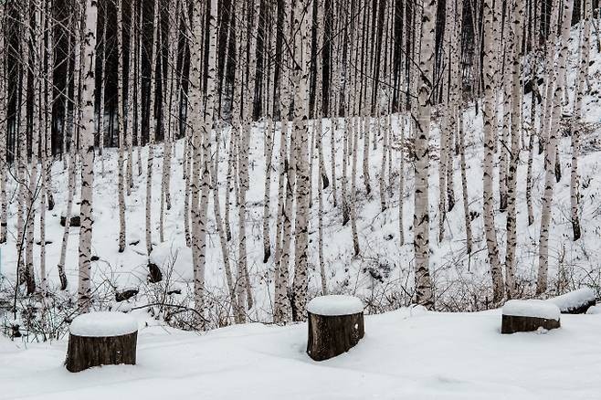 눈이 내리면 익숙한 풍경도 한 폭의 그림이 된다. 사진은 원대리 자작나무 숲. /사진=한국관광공사