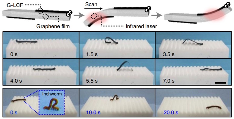 < 그림 2. 헤라클레스 인공근육이 인공 관절, 인공 손가락, 인공 자벌레 등 소프트 로봇 분야에 활용된 모습 >