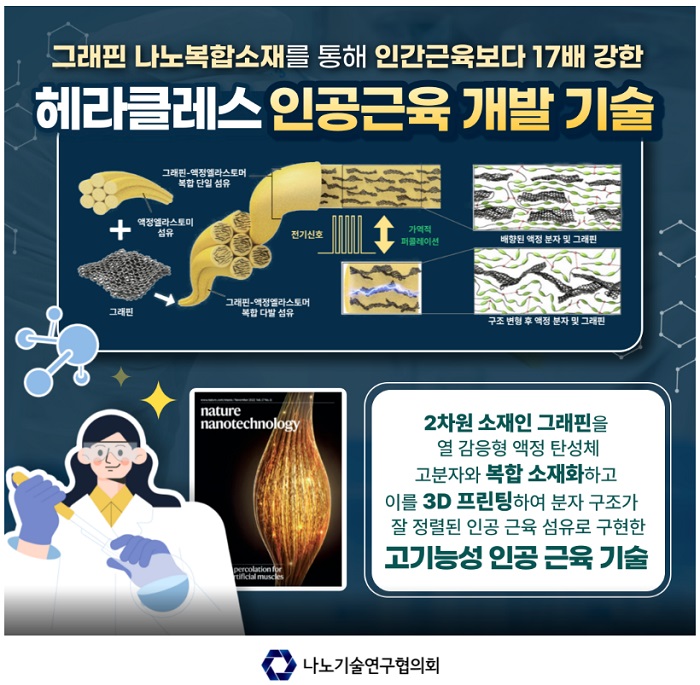 < 그림 4. KAIST 신소재공학과 김상욱 교수 연구팀이 개발한 인공근육 개발 기술 소개 카드뉴스 - 출처 : 나노기술연구협의회 >
