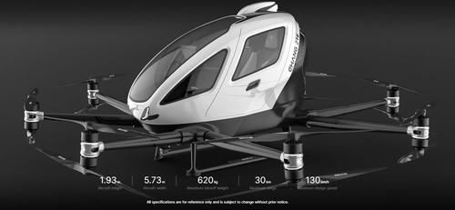 이항은 엔지니어 후화즈가 2014년에 설립한 기업입니다. 항공 매니아인 후화즈는 ‘조종사가 필요 없는 유인항공기’를 목표로 삼고 이 산업에 뛰어들었는데요. 2016년 미국 라스베이거스에서 열린 소비자가전전시회(CES)에서 첫 eVTOL ‘EH184’를 선보여 주목받기도 했습니다.