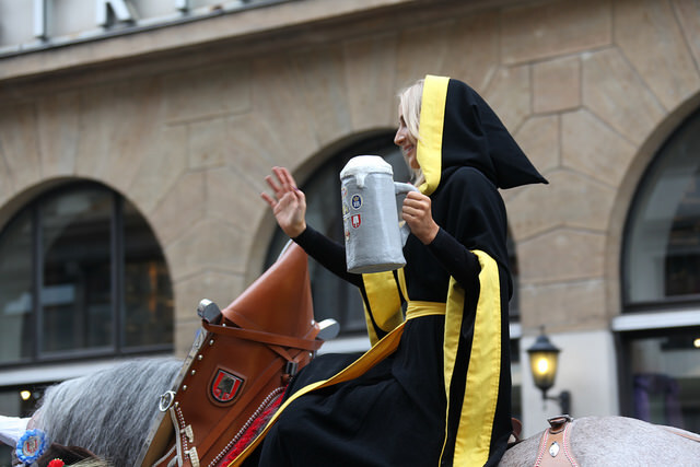 맨 앞의 마차에는 뮌헨 시장과 ‘뮌헨의 아이(Münchner Kindl)’가 타고 있다. 뮌헨의 아이는 뮌헨 시의 상징으로 검은색 수도복을 입고 왼손에 빨간 책을 든 모습으로 표현된다. 과거 뮌헨을 세운 베네딕트회 수도사들을 나타낸 것으로 16세기부터
