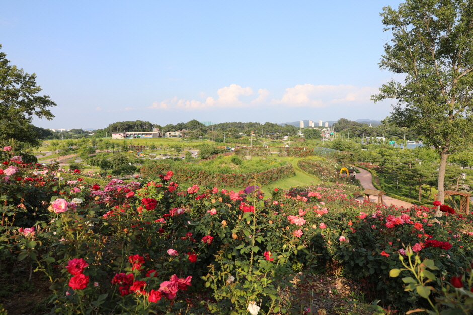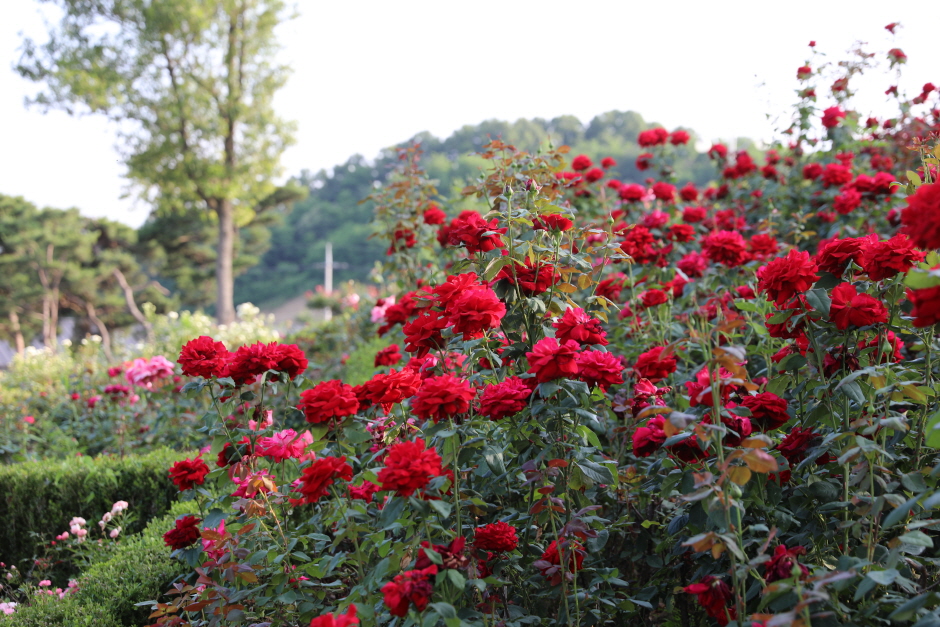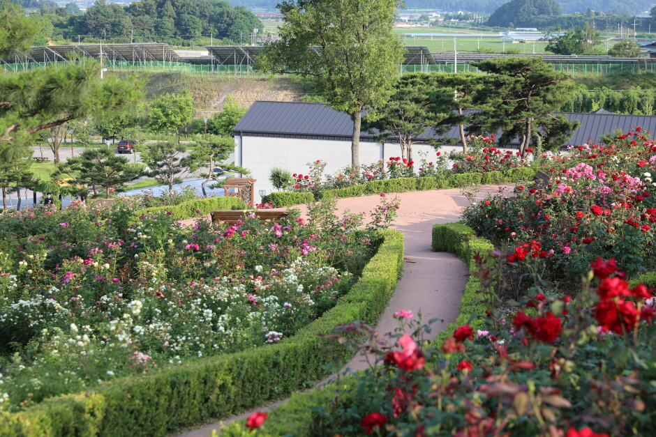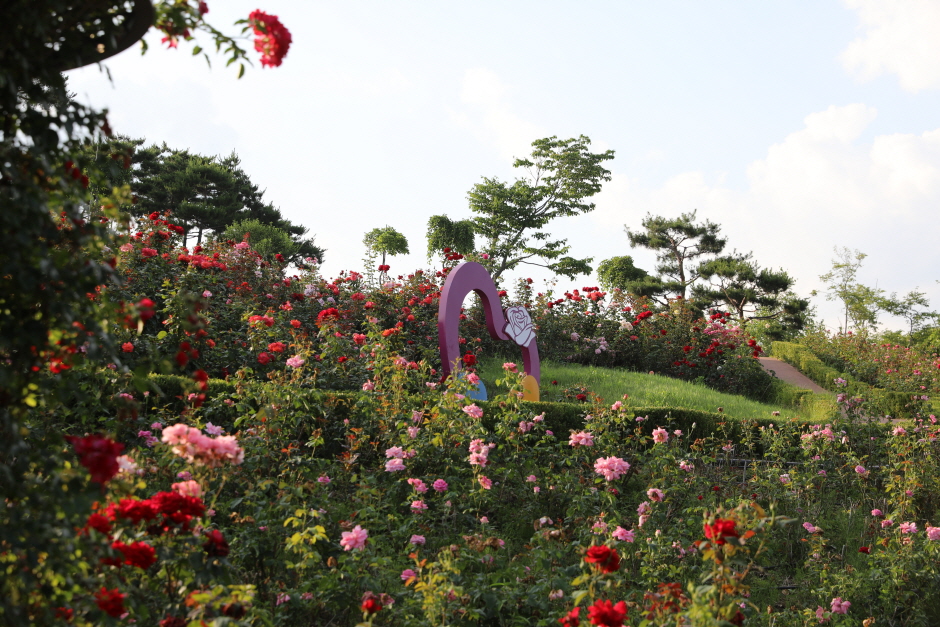 함창명주 테마파크 공원은 경북 상주시 함창읍에 자리 잡고 있다. 명주의 역사와 유래, 명주 짜기의 전통을 후세에 알리고 천연섬유인 명주의 가치를 새롭게 인식시키기 위해 건립된 명주 박물관과 한복의 아름다움을 감상할 수 있는 한국 한복 진흥원도 가까이 있다. 상주의 대표 전통산업인 함창명주의 위상을 높이고 알리기 위한 ‘함창명주 페스티벌’도 이곳에서 개최하고 있다. 18,500㎡ 규모의 장미 동산에는 20여 종의 다양한 장미꽃 품종 약 4만 그루가 100만 송이의 꽃을 피워 장관을 이룬다. 산책로도 잘 꾸며져 있어 자연과 생태, 장미 그리고 명주의 가치와 역사를 감상할 수 있는 테마 공원이다.